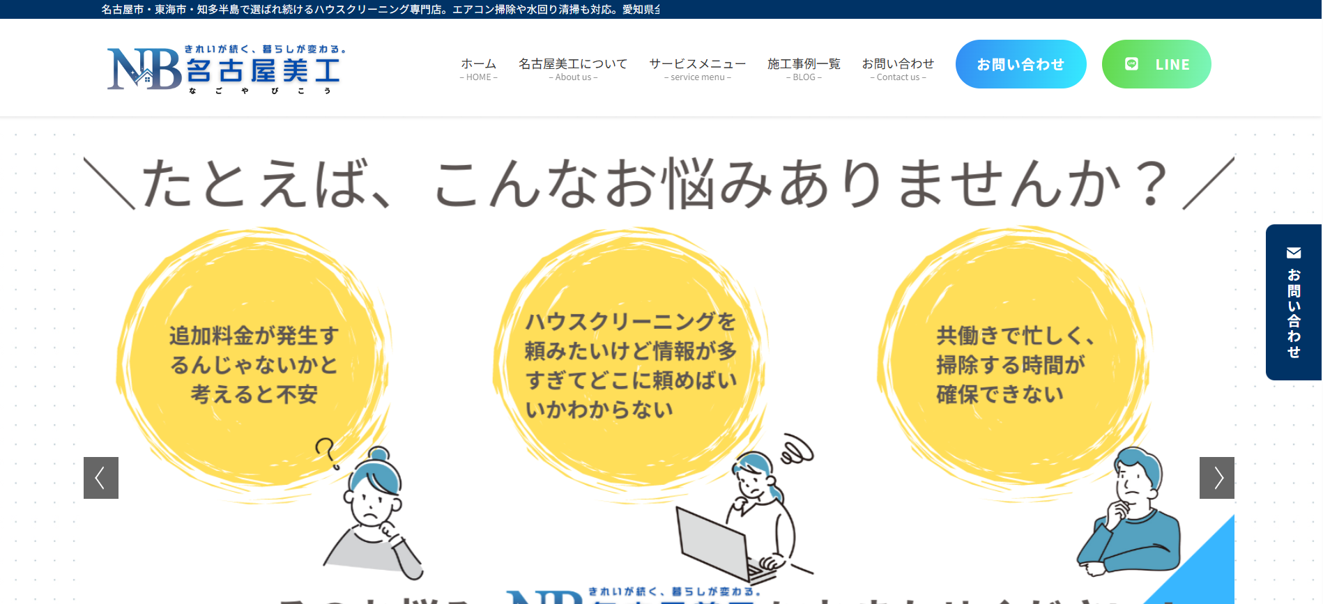 | NKサービス | 名古屋市・近郊 | 約2,800〜4,800円 | 高耐久・低価格の自社施工 |