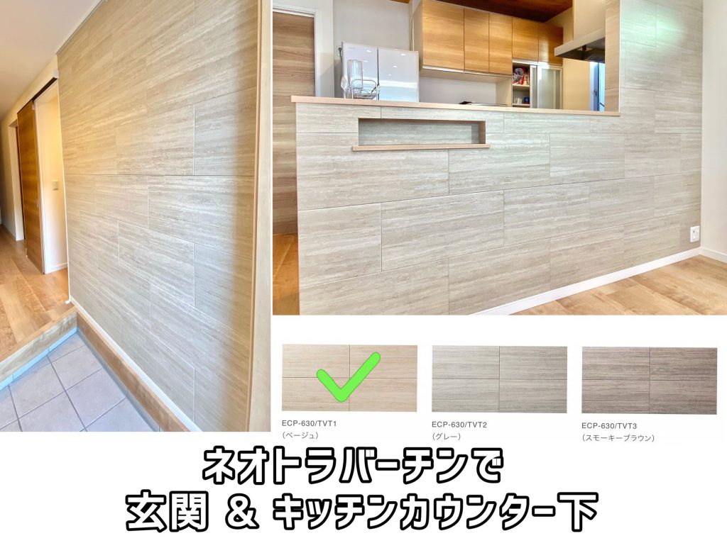 玄関とキッチンに🔸お揃いのタイル🔸を使った