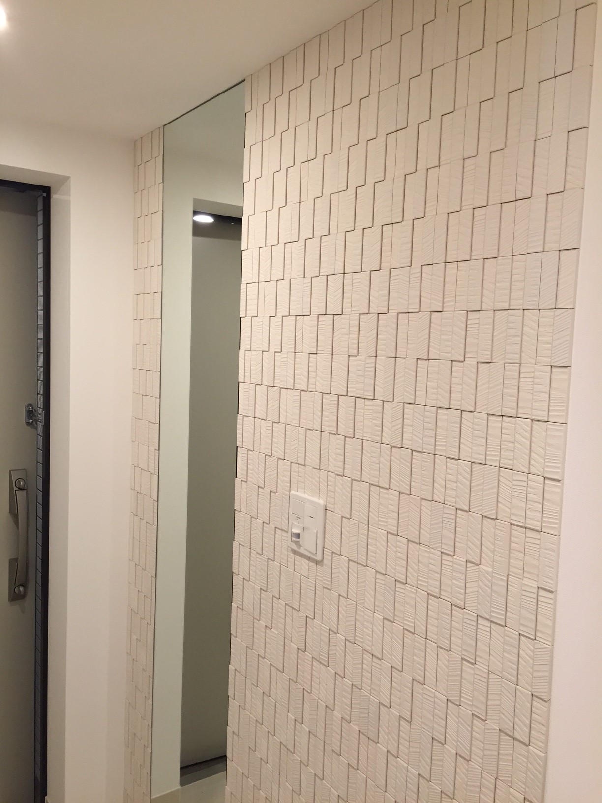 柱や今回のようなコーナーにエコカラットを貼ると、エコカラットがより立体的で主張を持ってカッコよく、個人的に大好きです^^