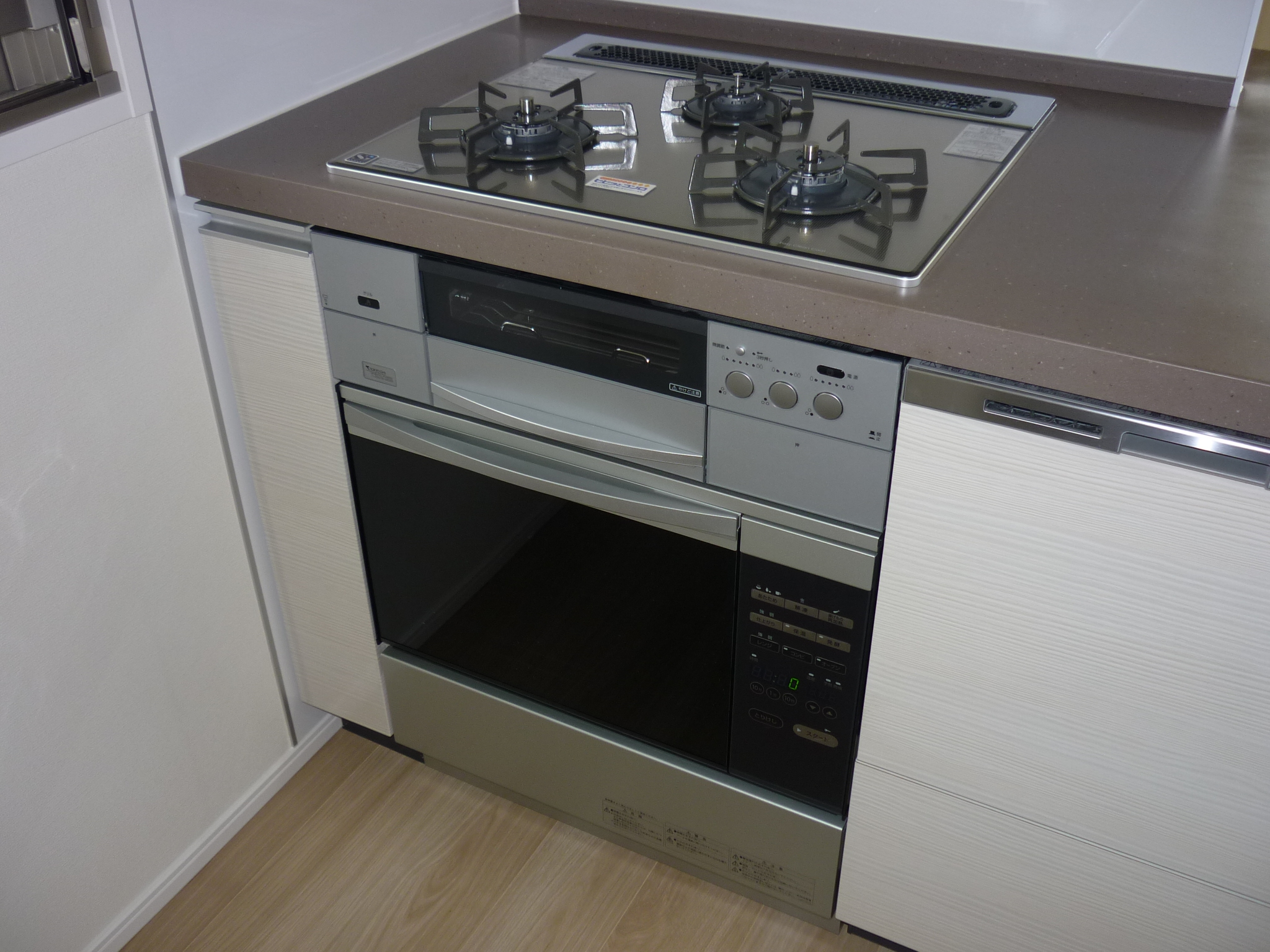 ガスコンロが元通り収まり、その下にガスオーブンが入りました♪